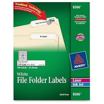 Avery® Filing Labels - 5266 - Template - 30 labels per sheet Avery ® Filing Labels Template. with TrueBlock™ Technology for Laser and Inkjet Printers, 3-7/16" x ⅔" 5266. Avery Design & Print. Add logos, images, graphics and more; Thousands of free customizable templates; Mail Merge to quickly import entire contact address list; Template compatible with Avery® 8166 - Google Docs, PDF, Word Download PDF template compatible with Avery® 8166 Label description Avery US Letter - 8166 Ink Jet File Folder-Assorted: It has 30 labels per sheet and print in US Letter. Disclaimer Templates provided herein are compatible with different labels providers, including Avery®, SheetLabels.com, OnlineLabels.com, Herma and others.