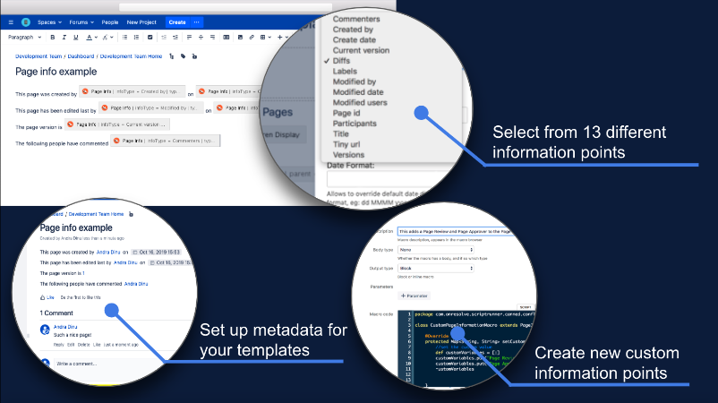 ScriptRunner Confluence Add-ons - Adaptavist Label Tools for ScriptRunner for Confluence lets you automatically add or suggest labels for users to add to a page. This can help you to categorise pages in a space by a known set of labels. New features include an intuitive user experience for the choose label macro, and user configurable label variables. Page Info