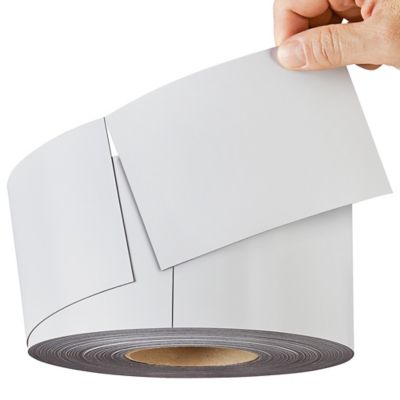 Magnetic Labels on a Roll - White, 4" x 200' - ULINE Easily relocate labels when you move inventory. Reusable - Wet cloth wipes off writing from vinyl surface. Scissor cut to desired length. Use with Wet Erase Markers .ULINE offers over 38,500 boxes, plastic poly bags, mailing tubes, warehouse supplies and bubble wrap for your storage, packaging, or shipping supplies.