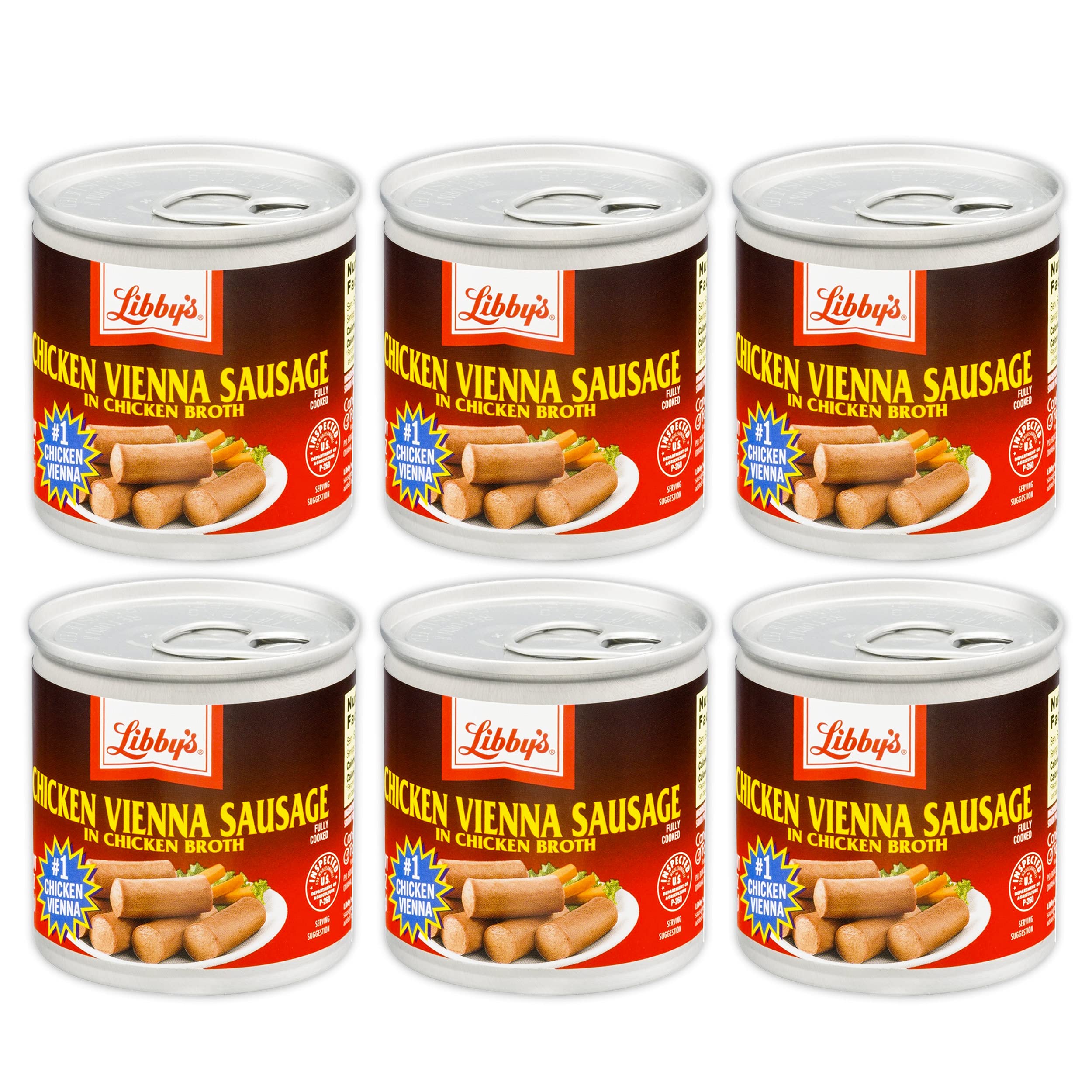 Libby's Vienna Sausages, 4.6 oz. 6 Count Can - Walmart.com Libby's: Quality Taste in Every Can. One 6-count pack of 4.6 oz. cans of Libby's Vienna Sausages Enjoy these plump and tasty Vienna sausages made with chicken, beef and pork added Ideal for camping, backpacking and other outdoor activities 10 grams of protein per serving