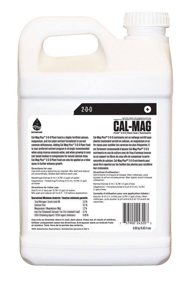 Amazon.com : Botanicare Cal-Mag Plus, A Calcium, Magnesium, And Iron ... Formulated to correct common deficiencies, Botanicare Cal-Mag Plus is a highly fortified calcium, magnesium, and iron plant supplement. It contains a 2-0-0 NPK and can be mixed in with regular waterings or applied as a foliar spray to further enhance growth. Product information Feedback Would you like to tell us about a lower price?