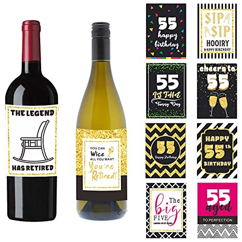 Happy 55 Birthday Juice Wine Bottle Labels Stickers Glod and Black Theme Decor for Man Woman 55 Year Old Cheer to 55th Bday Birthday Party Photo Props ...