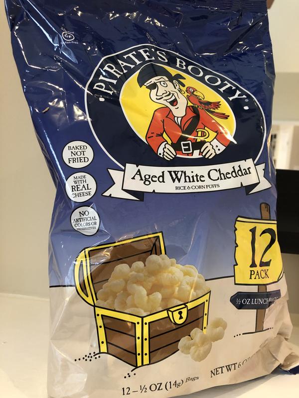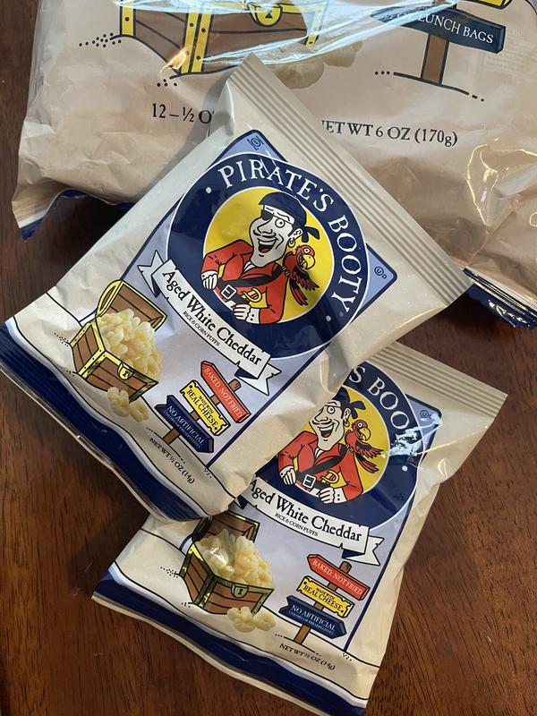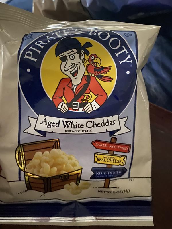 Pirate's Booty Aged White Cheddar Puffs - 12ct - 0.5oz : Target Pirate's Booty Snack Puffs, Aged White Cheddar are made from puffed rice and corn, blended with real aged white cheddar cheese. Baked, not fried. Pirate's Booty Snack Puffs are a gluten-free snack with no artificial colors, flavors, or ingredients. These 0.5oz bags of Pirate's Booty rice and corn puffs are perfect for snacking on-the-go or kids ...