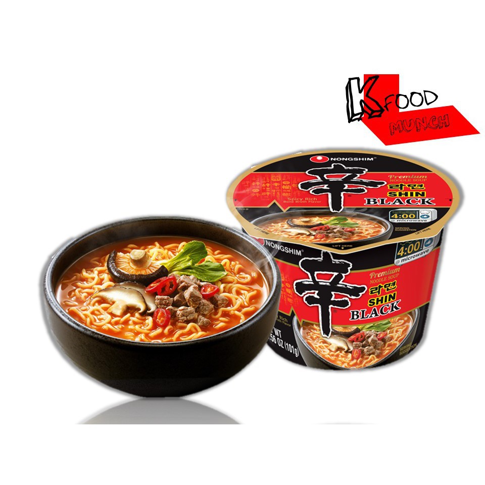 shin-black-bowl | Nongshim USA We've invested great care to put just the right amount of taste, nutrition, and convenience into each bowl to make Shin Ramyun Black bowl noodle our most complete product yet. Perfect combination of spicy Shin Ramyun and delicious pork bone soup - Premium taste, rich broth with spiciness - Richer flakes Taste better if you cook with a microwave