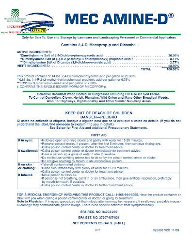 MEC AMINE-D | Loveland Products MEC AMINE-D. A three-way post-emerge broadleaf herbicide for selective broadleaf weed control in turfgrasses. Labels/SDS. Printer-friendly version.
