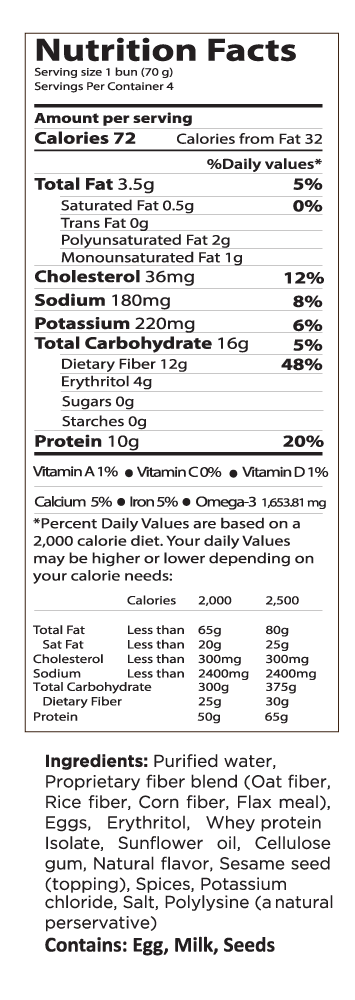 Smartbun® - Smart Baking Company Each carton of Smartbuns contains 6 servings. A case contains 4 cartons for 24 total individually wrapped Smartbuns®. Smartbuns® are sugar free, starch free, and gluten free— effectively, zero net carbs, making them Keto-Friendly. Our Main Ingredients Click here to find how they are so nutritious and delicious! PROTEIN PURE WATER FLAX MEAL Plain SmartBun 6-pack - Smart Baking Company The SmartBun is a Gluten-free, 63 calorie burger bun with 9 grams of protein per bun. The bun is high in fiber and Omega-3 fatty acids. Make fun food part of a healthy diet with the SmartBun. It's great for your weight! Add to cart SKU: 1200-0106-0001 Categories: Plain Smartbun, Smartbun UPC: 853817008291 Description Additional information White hamburger buns by PENNY SMART nutrition facts and analysis. ️ White hamburger buns by PENNY SMART nutrition facts and analysis. ... Nutrition Facts Portion Size: 39 g: Amount Per Portion: 100: Calories % Daily Value * Total Fat 1.5g: 2 %: Sodium 160mg: 7 %: Total Carbohydrate 20g: 7 %: Dietary Fiber 1g: 4 %: Sugar 2g: Protein 3g: 6 %: Sesame Smart Buns : Keto Lion: Keto Diet Review Site Ingredients Purified Water, Proprietary Fiber Blend (Oat Fiber, Corn Fiber, Flax Meal), Eggs, Erythritol, Whey Protein Isolate, Sunflower Oil, Cellulose Gum, Natural Flavor, Sesame Seed, Spices, Potassium Chloride, Salt Nutrition Facts So you can see from the nutrition facts, the buns have 0 net carbs and are extremely low carb friendly.