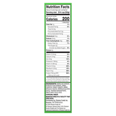 Birds Eye Rotini Alfredo Veggie Pasta Nutrition Facts Birds Eye Rotini Alfredo Veggie Pasta Nutrition Facts. Serving Size 109g: Calories: 170 Calories From Fat 41 Amount Per Serving % Daily Value* Total Fat: 4.5g 7% Saturated Fat 2.5g 13% Trans Fat 0g Cholesterol: 15.3mg 5% Sodium: 230mg 10% Total Carbohydrates: 22g 7% Dietary Fiber ... Calories in Vegetable Pasta Vegetable Pasta Nutrition Facts Vegetable Pasta Serving Size: cup (248g ) Amount Per Serving Calories 268 Calories from Fat 66 % Daily Value* Total Fat 7.4g 11 % Saturated Fat 3.9g 20 % Trans Fat 0.2g Polyunsaturated Fat 0.7 g Monounsaturated Fat 1.7 g Cholesterol 17mg 6 % Sodium 721mg 30 % Potassium 368mg 11 % Total Carbohydrates 40g 13 % Birds Eye Veggie Pasta Nutrition Facts - Cully's Kitchen Veggie noodles are an excellent gluten-free option for reducing carbs in pasta. Still, they also provide a complete set of nutrients, such as vitamin A (good for vision and the immune and inflammatory systems), C (an antioxidant that is good for skin and bones), E (good for heart disease prevention), and K (good for skin and bones). Veggie Spaghetti Pasta: Vegetable Pasta & Recipes | Barilla 12 oz. (6 x servings) Range Barilla Veggie Pasta Benefits Made with Non-GMO Ingredients Made with puree from real zucchini and spinach Delicious taste & texture Provides one full serving of vegetables per 3.5 oz portion* *The USDA MyPlate recommends a daily intake of 2.5 cups of vegetables for a 2,000 calorie diet Suitable For Vegetarian