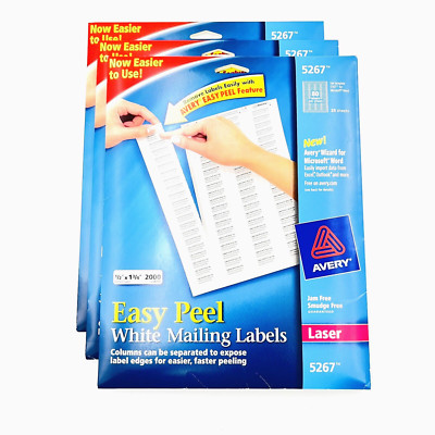 Avery Easy Peel Laser Address Labels, 1/2" x 1 3/4", White ... - Staples Avery Easy Peel Laser Address Labels, 1/2" x 1 3/4", White, 2000 Labels Per Pack (5267) ; Delivered tomorrow. $13.19 ; Next-Day ; AutoRestock. $12.53. Save $0.66.
