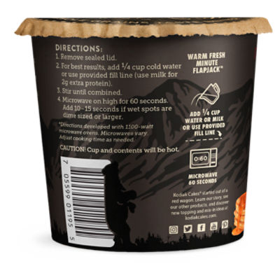 Kodiak cakes nutrition label. Calories in Kodiak Cakes Protein Oats and Nutrition Facts - FatSecret 4g. Carbs. 29g. Protein. 10g. There are 190 calories in 1/2 cup (50 g) of Kodiak Cakes Protein Oats. Calorie breakdown: 19% fat, 60% carbs, 21% protein. Kodiak® | Nourishment For Today's Frontier™ - Kodiak Cakes Nuts & Seeds Power Oatmeal Breakfast & Brunch Cinnamon Raspberry Power Oatmeal Breakfast & Brunch Fruit & Yogurt Power Oatmeal Breakfast & Brunch Pumpkin Bread Breakfast & Brunch Pumpkin Cream Cheese Muffins Desserts Cinnamon Apple Cobbler Breakfast & Brunch Apple Butter Pancakes Dinner Loaded Waffles Breakfast & Brunch Pumpkin Protein Waffles Kodiak Cakes Power Cakes Flapjack and Waffle Mix, 2 kg Kodiak Cakes Buttermilk Power Cakes are carefully crafted with 100% whole grains and 14 grams of protein per serving to give you the great-tasting nourishment you need to take on the day. You can even increase the protein content up to 21 grams by substituting water with milk or by using milk and an egg. Features: Buttermilk Protein Packed Chocolate Chip Oatmeal Packets - Kodiak Cakes 200 Calories 4g Total Fat 30g Total Carbs 12g Protein Ingredients: 100% whole grain rolled oats, cane sugar, semisweet chocolate chips (sugar, unsweetened chocolate, cocoa butter, dextrose, sunflower lecithin), pea protein concentrate with tapioca starch, milk protein isolate with sunflower lecithin, cocoa, sea salt. Contains milk.