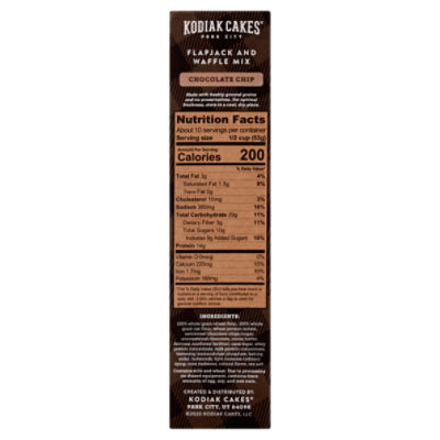 Kodiak Cakes Power Cakes Dark Chocolate Flapjack & Waffle Mix Calories, 190 ; Calories from Fat, 0 ; Saturated Fat 2g, 10% ; Dietary Fiber 5g, 18% ; Added Sugars 8g, 16% ...