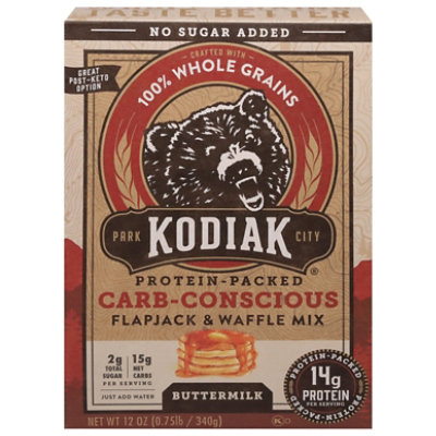 Kodiak Cakes Protein-Packed Carb-Conscious Buttermilk Flapjack ... Kodiak Cakes Protein-Packed Carb-Conscious Buttermilk Flapjack & Waffle Mix ; Trans Fat 0g ; Cholesterol 35mg, 12% ; Sodium 370mg, 16% ; Potassium 300mg, 6% ...