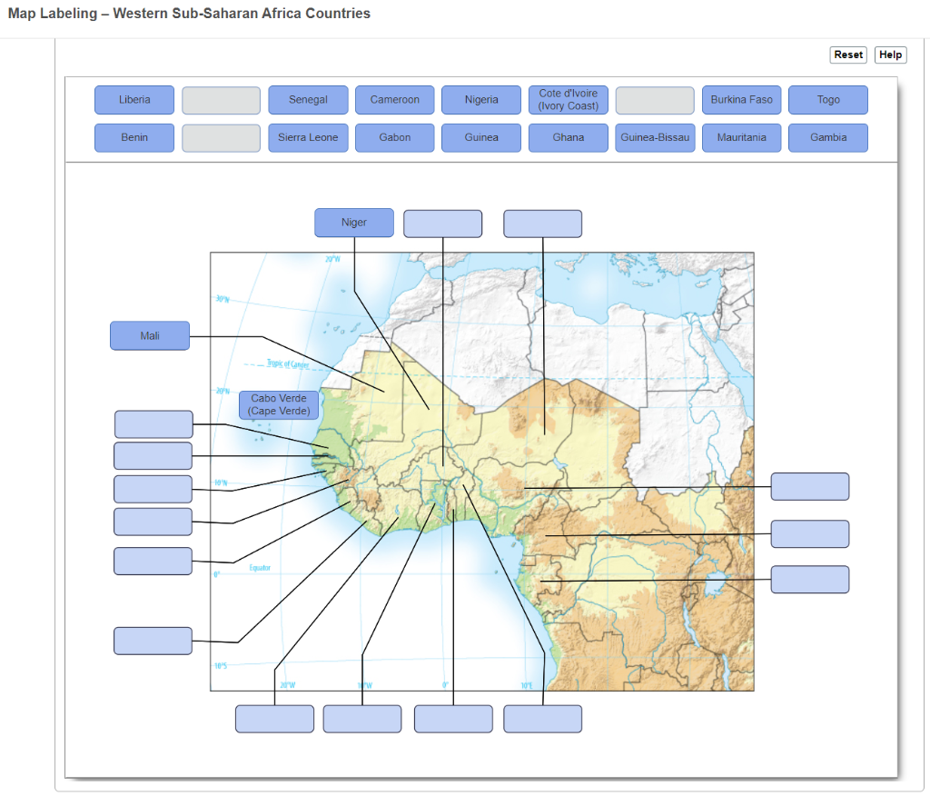 Solved Map Labeling - Western Sub-Saharan Africa Countries ...