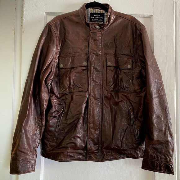 Lucky Brand Black Label Brown Leather Jacket Large | Brown ...