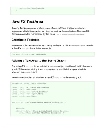 JavaFX Label | o7planning.org package org.o7planning.javafx.label; import java.io. ... text of Label is long, you need to wrap it in order to display the text of label on multiple lines. Wrap a Label : Label « JavaFX « Java - Java2s.com Wrap a Label : Label « JavaFX « Java. ... Application; import javafx.scene. ... setHeight(180); HBox hbox = new HBox(); Label label1 = new Label("Search ...
